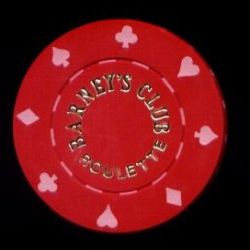 | 10. | Barney's Lake Tahoe NV, Red chip, Roulette, 4 suits mold, hotstamped