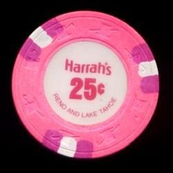 | 47. | Harrah's Reno/Lake Tahoe NV, 0.25 Pink chip, 3 lavender/white/lavendar inserts, circle inlay, H&C mold