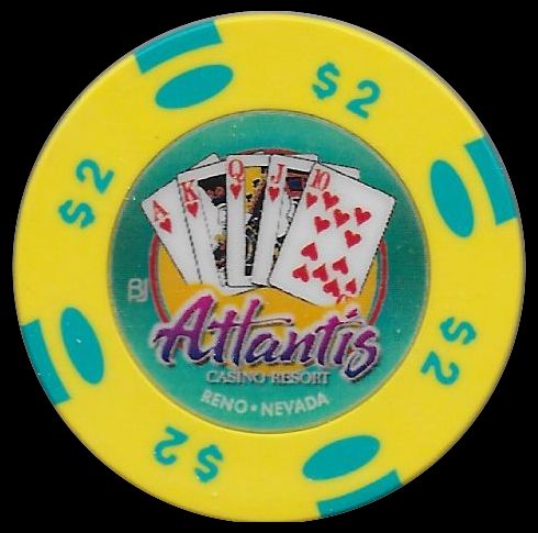 | 2. | Atlantis Reno NV, 2.00 Yellow chip, blue inserts, Bud Jones, royal flush, circle inlay