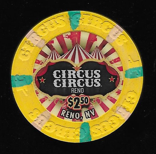 | 21. | Circus Circus Reno NV, 2.50 Yellow chip, House mold, circle inlay, 4 green / 4 red inserts