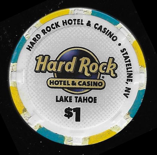 | 38. | Hard Rock Hotel Lake Tahoe NV, 1.00 White chip, 4 blue / 4 yellow inserts, circle inlay, H&C mold