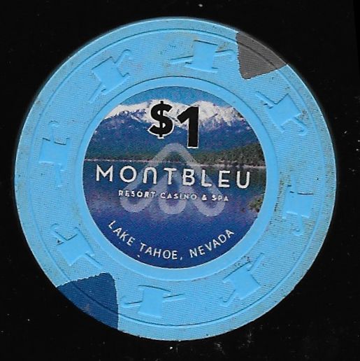 | 78. | Montbleu Lake Tahoe NV, 1.00 Blue chip, H&C mold, circle inlay, 1 purple / 1 brown triangle insert