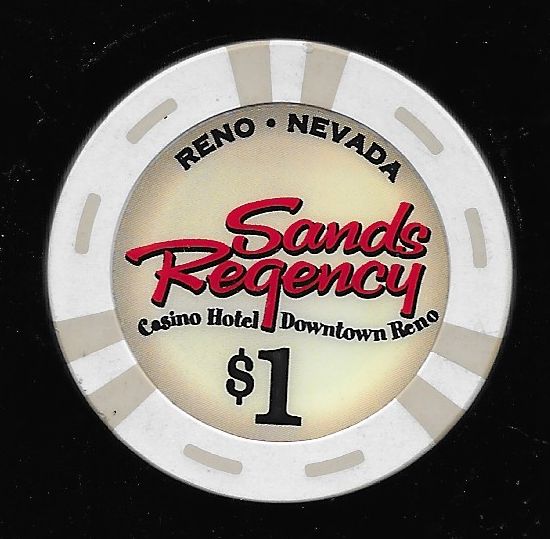 | 121. | Sands Regency Reno NV, 1.00 White chip, 6 tan inserts, 6 tan dashes inserts, circle inlay