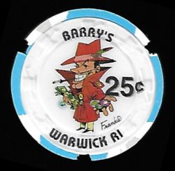 Warwick RI, 0.25 White chip, 4 blue / 2 yellow inserts, notched, Frankie's Funny Money