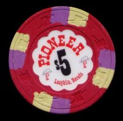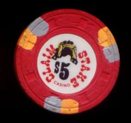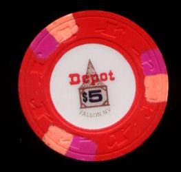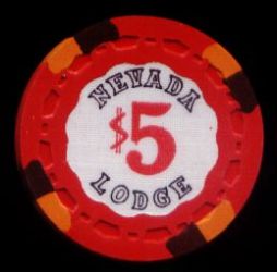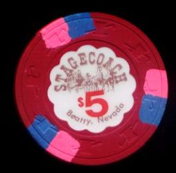 | 549. | (5DNevada) Stagecoach Beatty NV, 5.00 Red chip, 3 blue/pink inserts, H&C mold, scalloped inlay