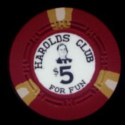 | 32. | (5DVegas) Boulder Club Las Vegas NV, 5.00 Red chip, crown mold, scalloped inlay