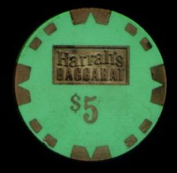 | | 555. | (Fantasy) Tangiers Casino Las Vegas NV, 25.00 Movie prop, green chip, brass core, 5 brass inserts