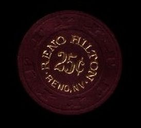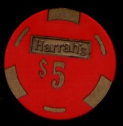 604. | (RenoTahoe) Harrah's Reno NV, 0.10 Maroon chip, hotstamped, small key mold, circle inlay