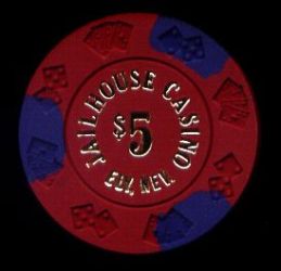| 30. | (5DChips) Blockhouse Card Room Midway WA, 5.00 Red chip, 4 black inserts, 2 offwhite inserts, SC mold