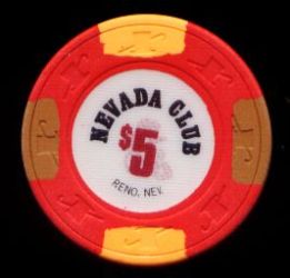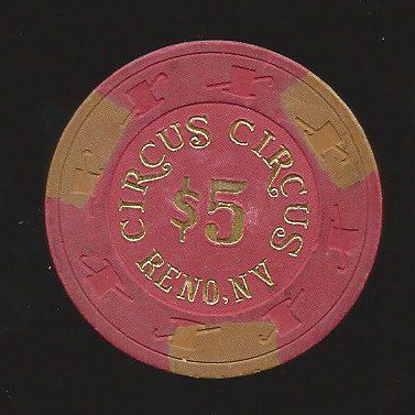 | 78. | (5DNevada) Circus Circus Reno NV, 5.00 Red chip, 3 mustard inserts, circle inlay, hotstamped, Reno NV