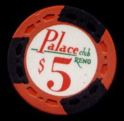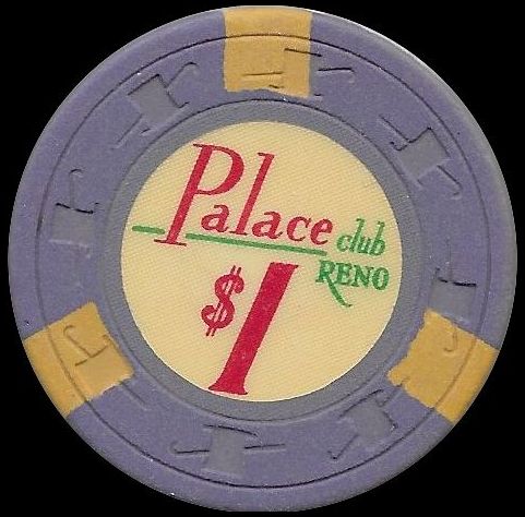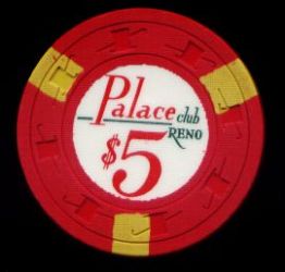 629. | (HFNevada) Palace Club Reno NV, 20.00 Mustard chip, Nevada diecards incused mold, circle inlay, 3 green inserts