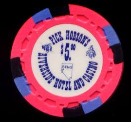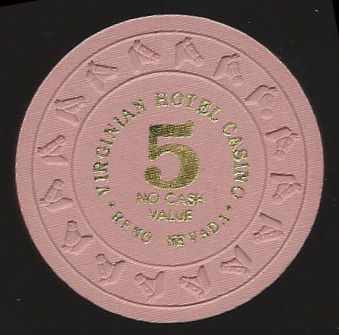 | 586. | (5DNevada) Virginian Reno NV, 5.00 Pink chip, HHR mold, circle inlay, hotstamped, NCV