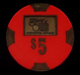 | 52. | (Canada) Cash Casino Calgary Calgary AB, Canada, 5.00 Red chip, H&C mold, 4 green / 4 beige inserts, cowboy & horse silhouette