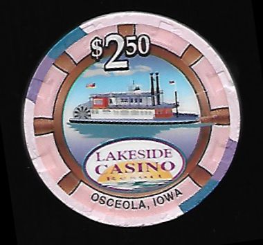 | 64. | (Missouri) Casino Queen St Louis MO, 2.50 Pink chip, 4 blue inserts, house mold, scalloped inlay