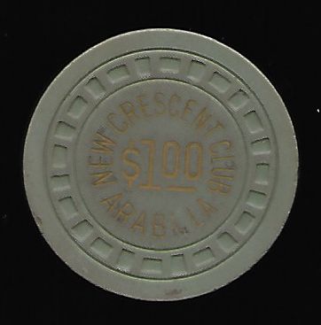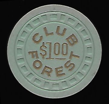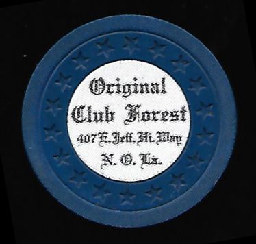 | 85. | (Louisiana) Club Forest New Orleans LA, 1.00 Gray chip, rectangle-hub mold, circle inlay, hotstamped