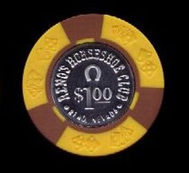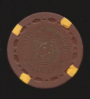 | 86. | (Nevada) Club Horseshoe Fallon NV, 1.00 Brown chip, 4 yellow inserts, small crown mold, hotstamped
