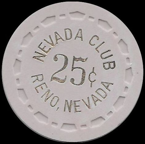 624. | (RenoTahoe) Nevada Club Reno NV, White chip, green 1/4 pie, SC mold, circle inlay, Redfield personal chip